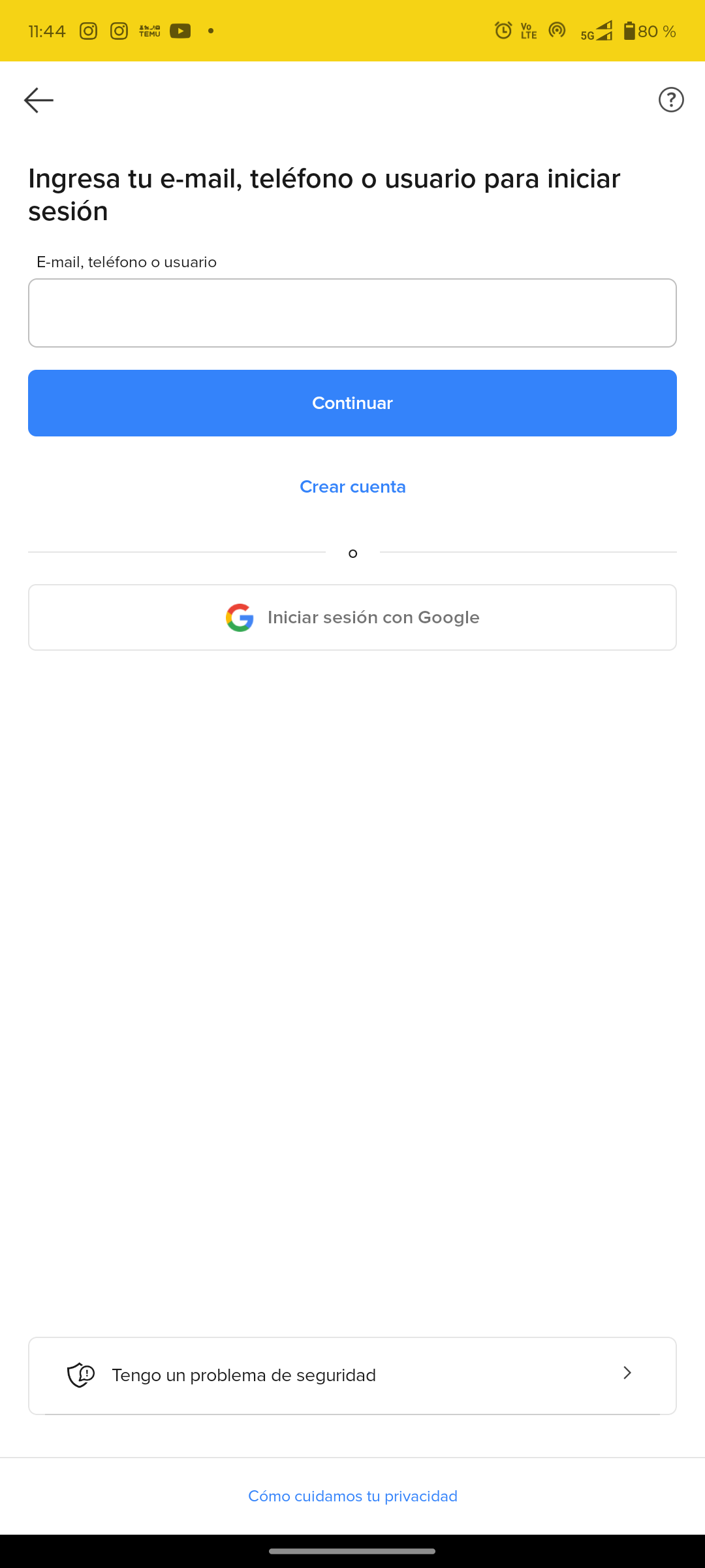 Asegúrate de tener la app de Mercado Libre instalada en tu dispositivo. Ábrela y, si es tu primera vez, inicia sesión o crea una cuenta. En este manual hay una guía completa sobre estos primeros pasos 🛒Vender un producto.