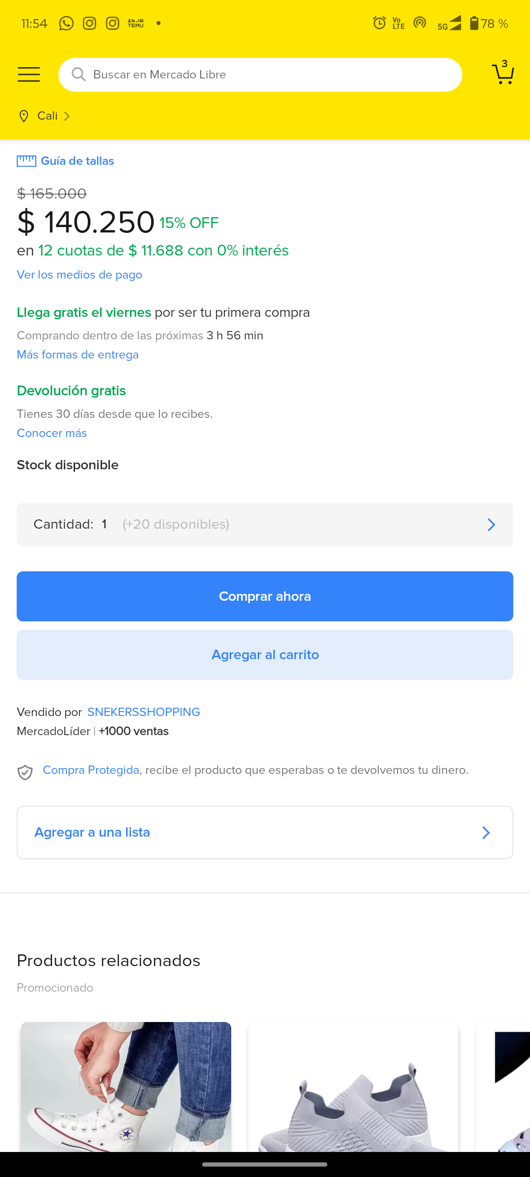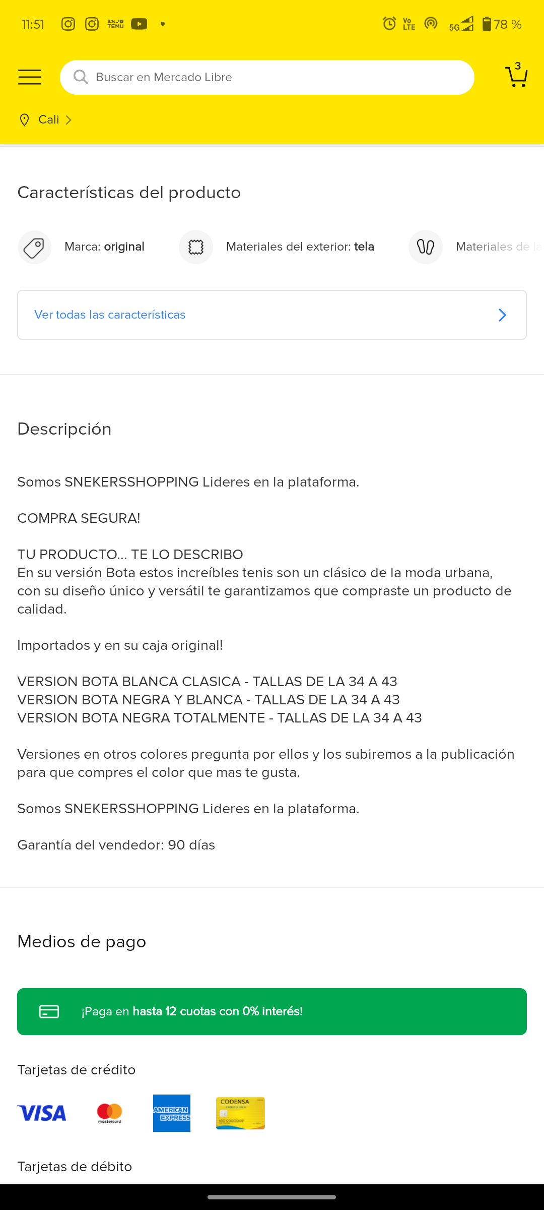 Al seleccionar un producto, verás su descripción completa. Aquí puedes leer sobre sus características, especificaciones y condiciones de venta, como el envío o los tiempos de entrega. Si tienes dudas, puedes deslizar hacia abajo para ver la sección de preguntas y respuestas o hacerle una pregunta al vendedor.