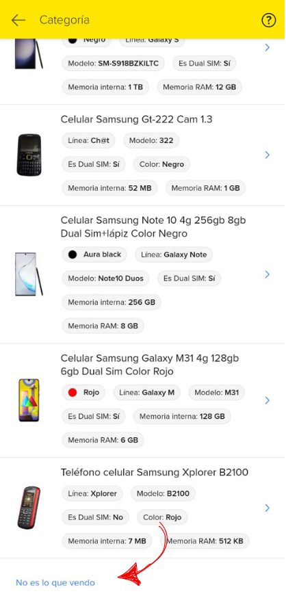 Si no encuentras un producto parecido entonces tu opcion sera “No es lo que vendo”, en donde podras personalizar las caracteristicas de tu producto desde cero.